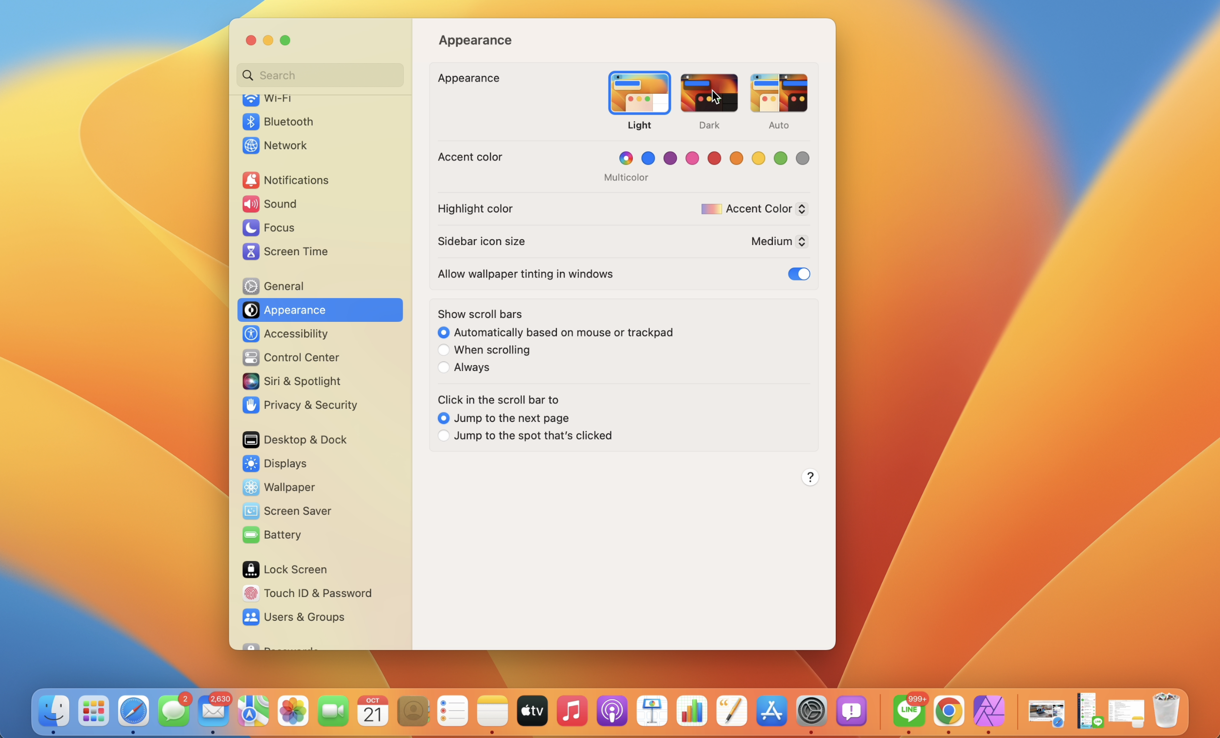 การตั้งค่า macOS Ventura โหมดสว่าง/มืด