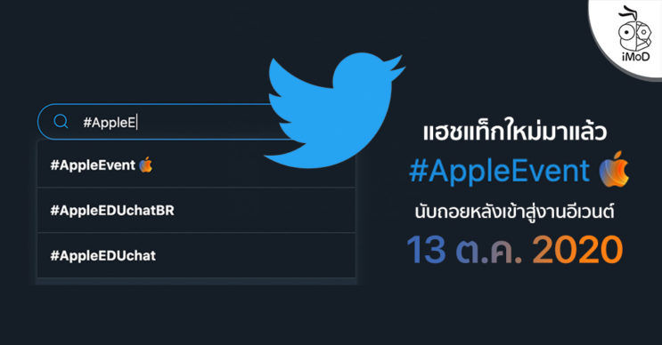 Hashtag ใหม่มาแล้ว พิมพ์ #appleevent ใน Twitter ขึ้นอิโมจิโลโก้ Apple สีน้ำเงินและส้ม