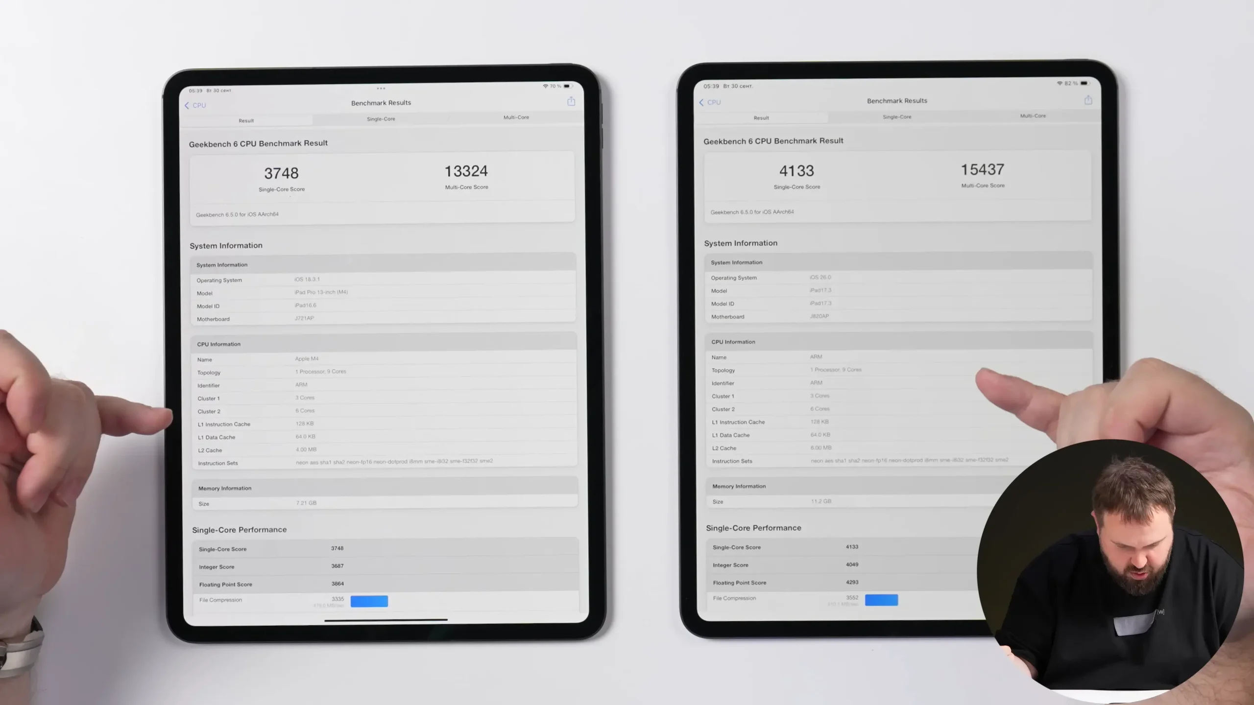 ผลการทดสอบยังแสดงว่า iPad Pro ที่มีหน่วยความจำ 256GB จะมี RAM 12GB เช่นเดียวกับ iPhone Air, iPhone 17 Pro และ iPhone 17 Pro Max ซึ่งรุ่นที่มีชิป M4 มี RAM เพียง 8GB เท่านั้น