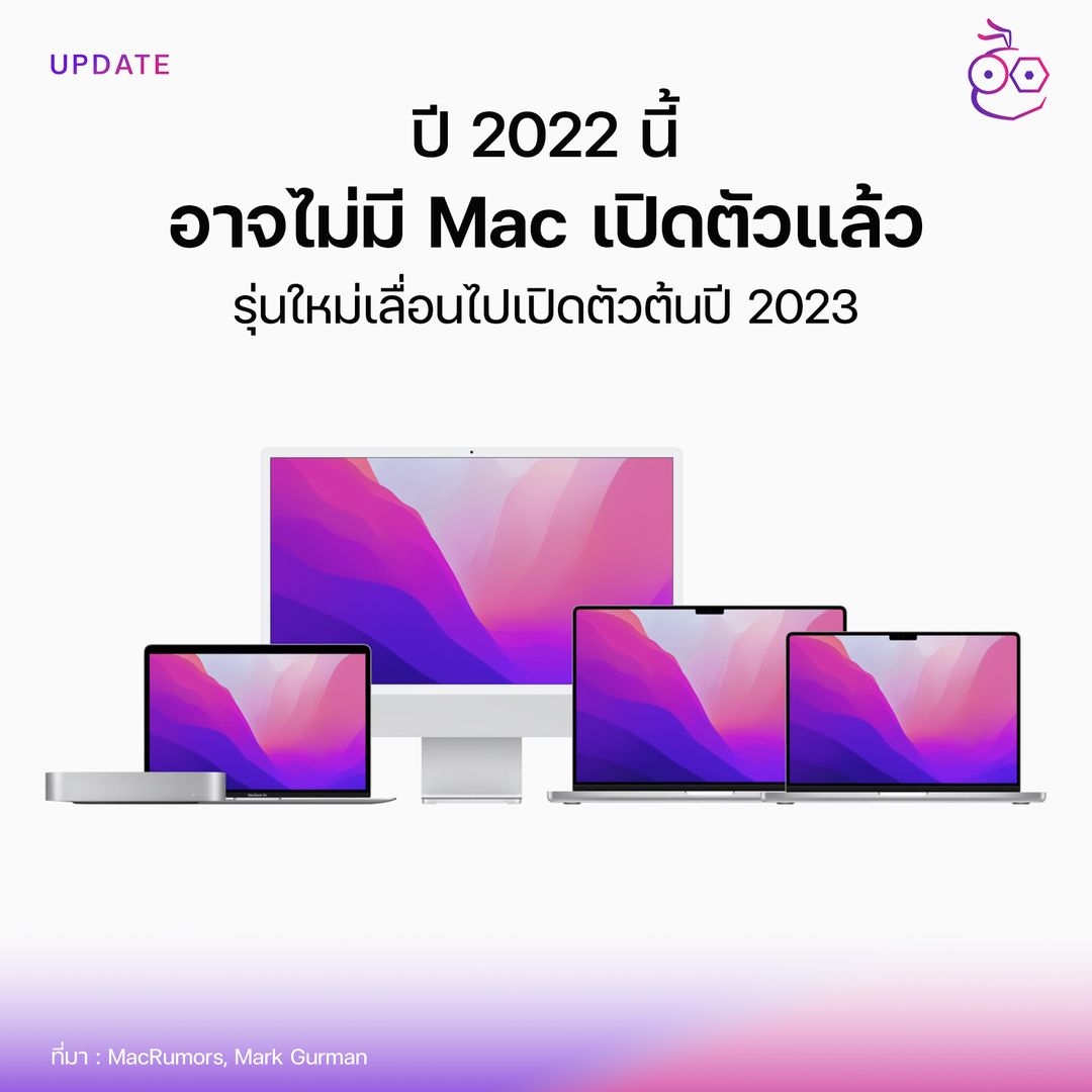 Mark Gurman เผย จะไม่มี Mac รุ่นใหม่เปิดตัวแล้วในปี 2022 นี้ รุ่นใหม่ถูกเลื่อนไปเปิดตัวต้นปี 2023