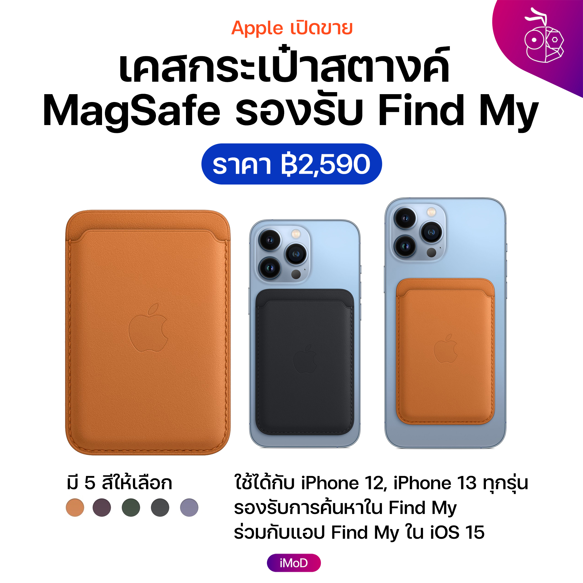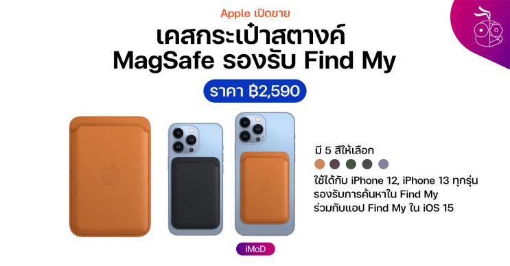 Apple เปิดขายเคสกระเป๋าสตางค์ MagSafe สำหรับ iPhone 13, iPhone 12 รองรับการค้นหา Find My แล้ว ราคา 2,590 บาท สั่งซื้อได้ที่ Apple Store Online ไทย
