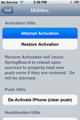 3. ไปที่เมนู Utilities กดที่ Attempt Activation หากว่าไม่เห็นปุ่ม Attempt Activation ให้ทำการ De-Activate iPhone ก่อนแล้วปุ่มนั้นจะมา