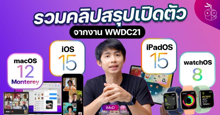 ในงาน WWDC21 เมื่อ 7 มิ.ย. 2021 ที่ผ่านมาทาง Apple จัดในรูปแบบออนไลน์เป็นปีที่ 2 เนื่องจากวิกฤตการระบาดของ COVID-19 ซึ่งในงานนี้มีซอฟต์แวร์หลักที่เปิดตัวได้แก่ iOS 15, iPadOS 15, macOS 12 (Monterey) และ wactchOS 8 ทีมงานสรุปข้อมูลสำไฮไลท์สำคัญ ๆ มาให้ชมกันครับ