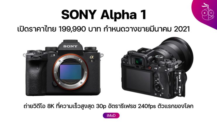 เปิดตัวมาซักพักนึงแล้วกับกล้อง Alpha 1 ล่าสุดโซนี่ไทยก็ได้เผยค่าตัวกล้องรุ่นนี้มาแล้ว โดยมีราคาอยู่ที่ 199,990 บาท กำหนดวางจำหน่ายกลางเดือนมีนาคม 2021