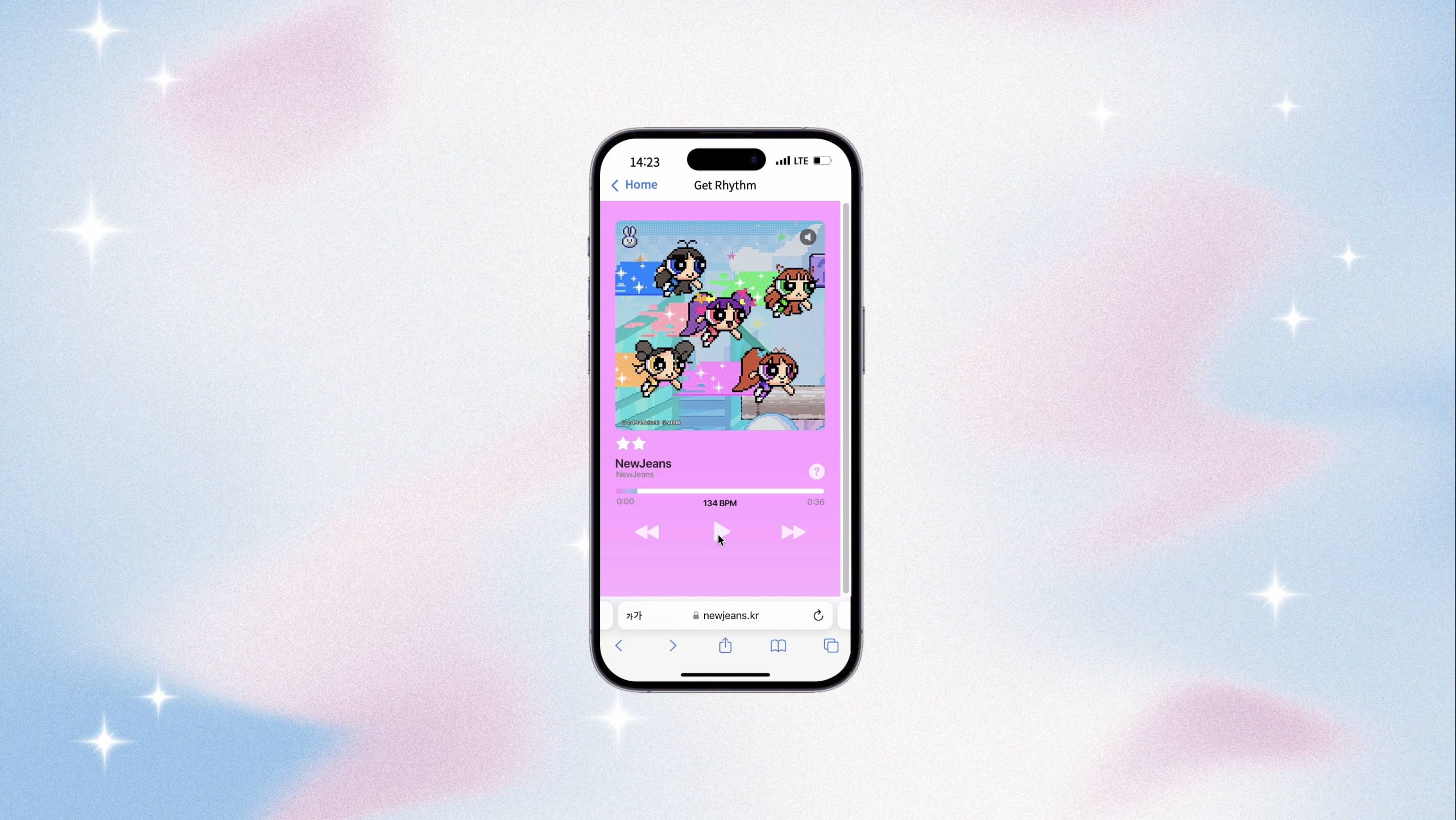 โดยที่เราสามารถฟังเพลงต่าง ๆ ของ NewJeans ได้โดยการ “กดปุ่มเพลย์” ข้างล่าง และยังเลือกเพลงอื่น ๆ ได้ โดยการกดปุ่ม “เลื่อนเพลง” ทั้งซ้ายขวาได้เลย