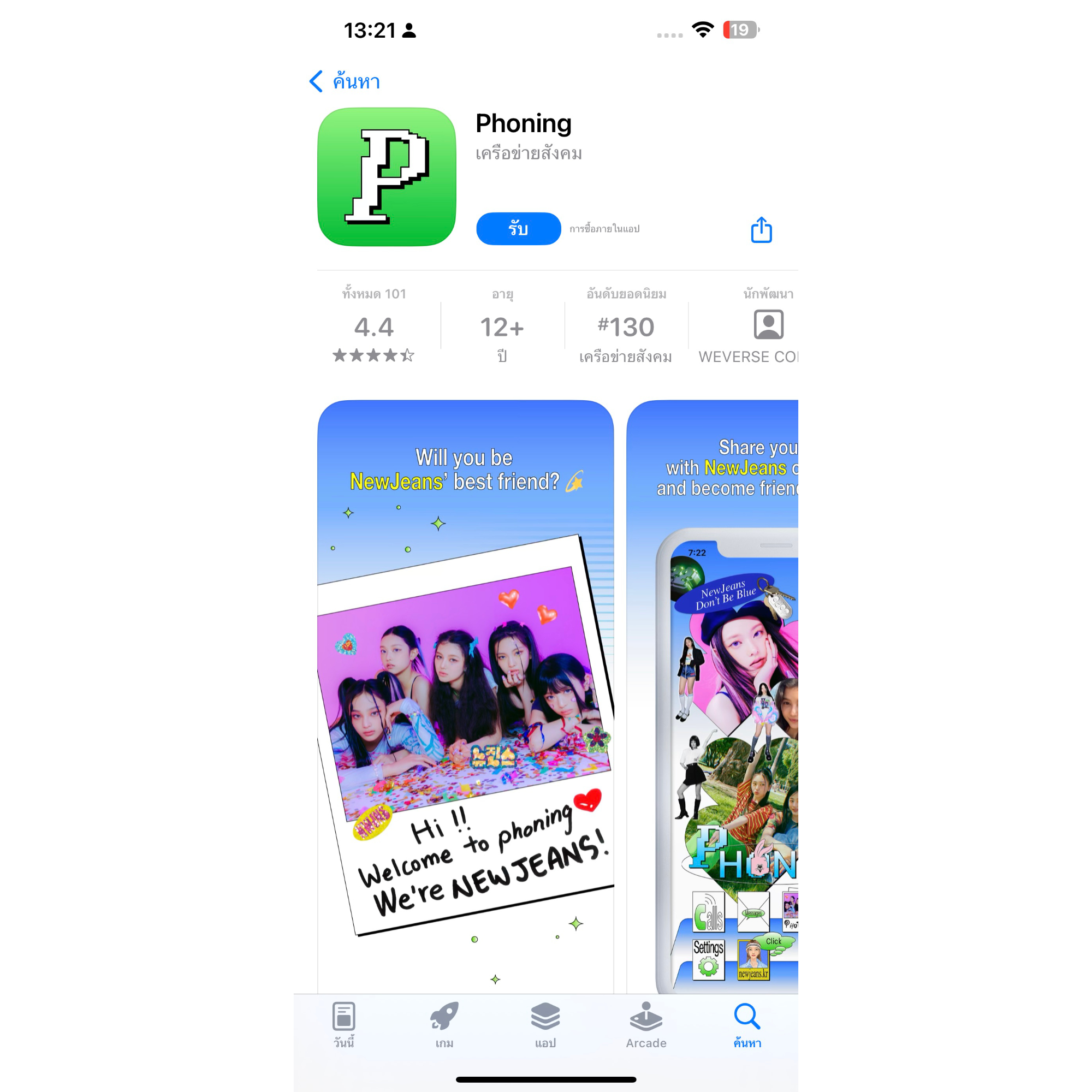 ตัวเว็บจะเด้งให้เราโหลดแอป Phoning ก่อน พอโหลดเสร็จแล้วอย่าลืมสมัครสมาชิกก่อน ตัวแอปนั้นจะมีความเป็น NewJeans มาก ยังไงเพื่อน ๆ ก็ลองไปโหลดแอปมาเล่นกันดูนะ
