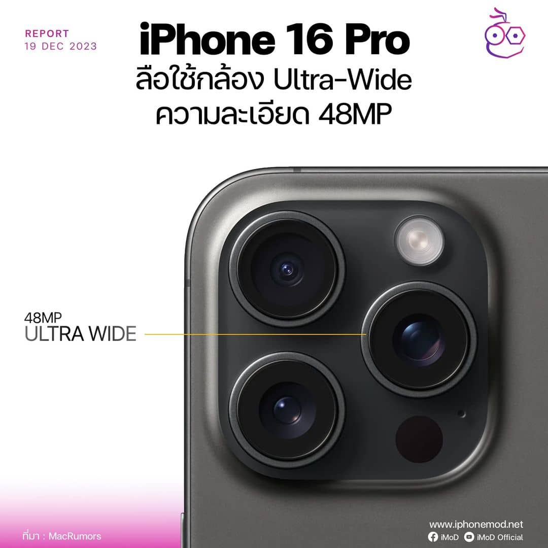 หลุดข่าวลือจากโพสต์ใน Weibo ได้บอกว่า iPhone 16 Pro อาจจะใช้กล้อง Ultra-Wide ความละเอียด 48MP!