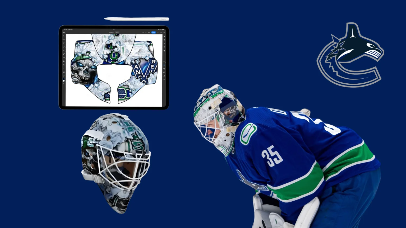 Apple ได้เชิญศิลปินที่ใช้ iPad Pro และ Apple Pencil Pro เพื่อสร้างสรรค์ดีไซน์ไอคอนิกของหน้ากากผู้รักษาประตู NHL ขึ้นมาใหม่ในแคมเปญ Made on iPad