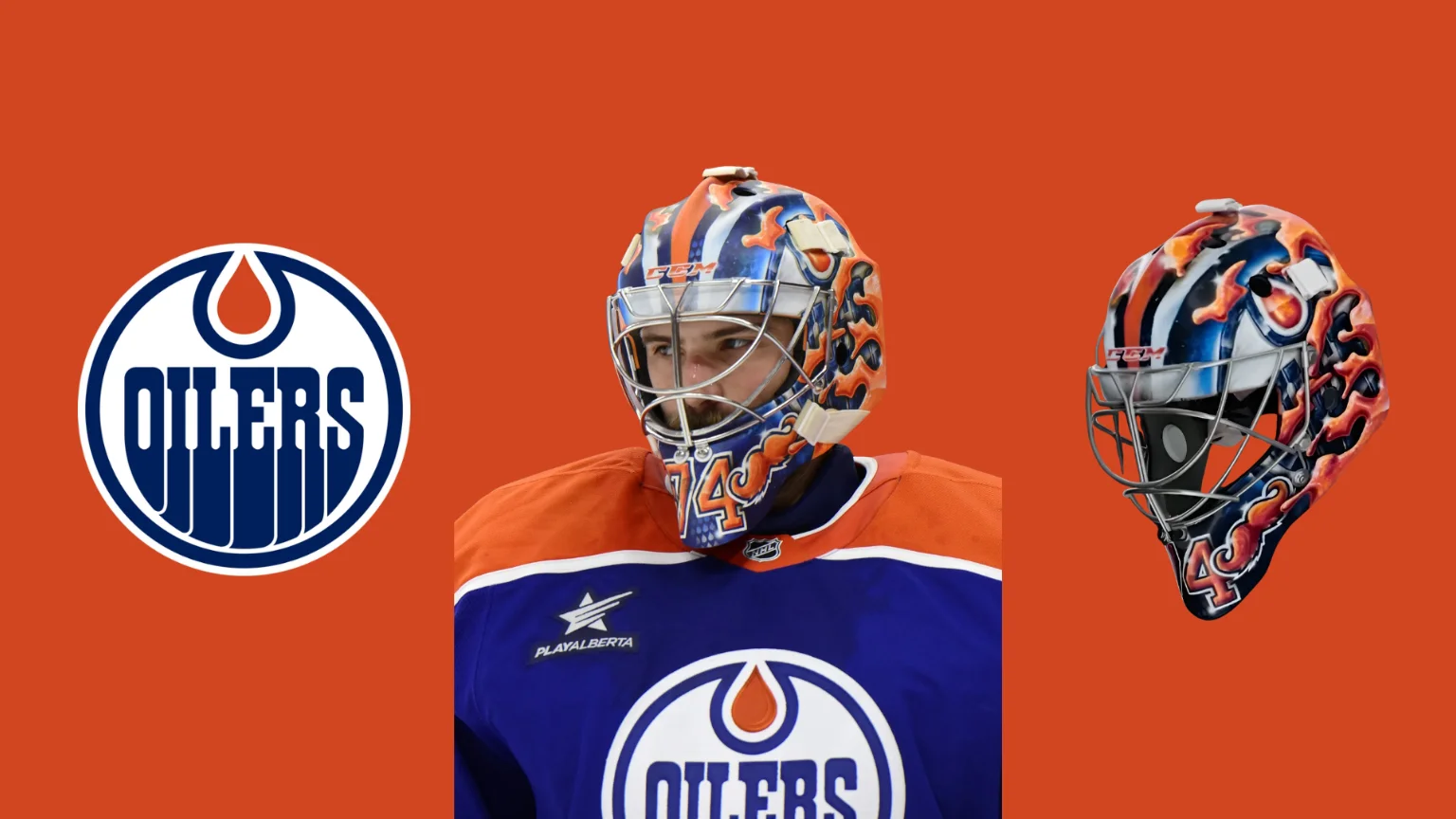 - Stuart Skinner จากทีม Edmonton Oilers มีหยดน้ำมันสีส้มของ Oilers และอุ้งเท้าหมีเป็นตัวแทนของครอบครัว