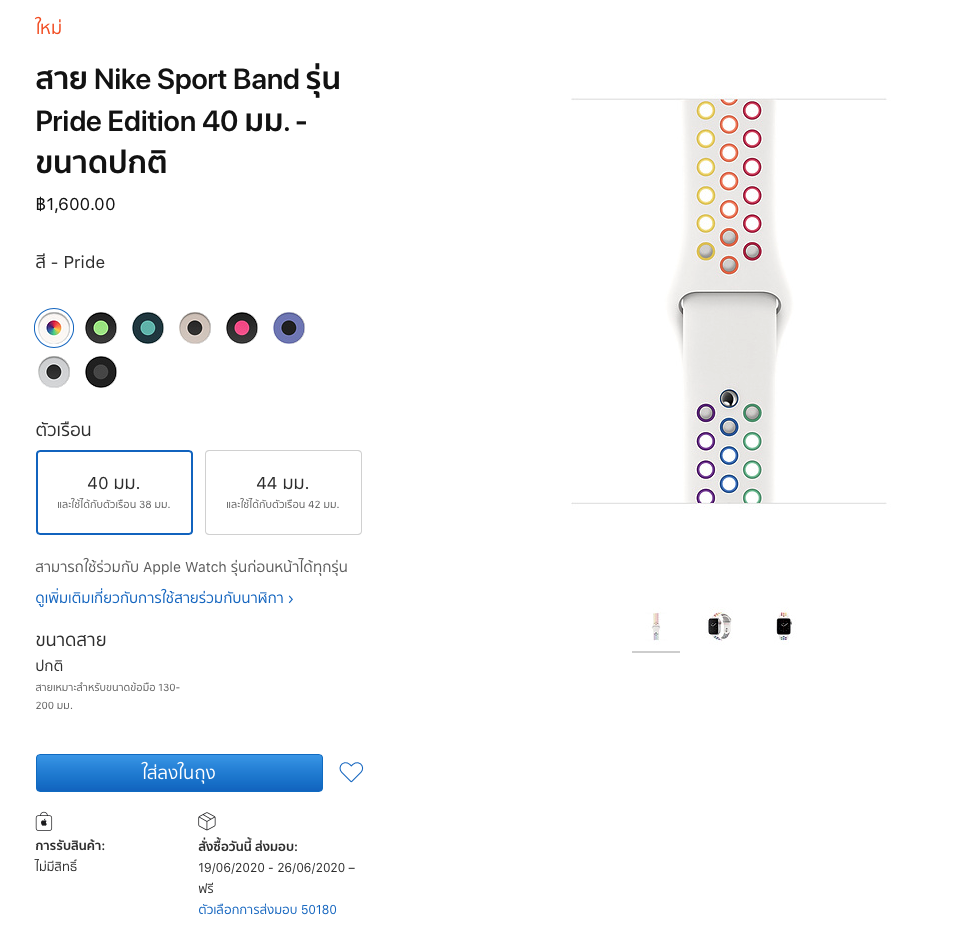 สาย Nike Sport Band รุ่น Pride Edition ของหมดแล้ว สั่งตอนนี้ (พ.ค. 63) รับของอีกทีปลายเดือน มิ.ย.