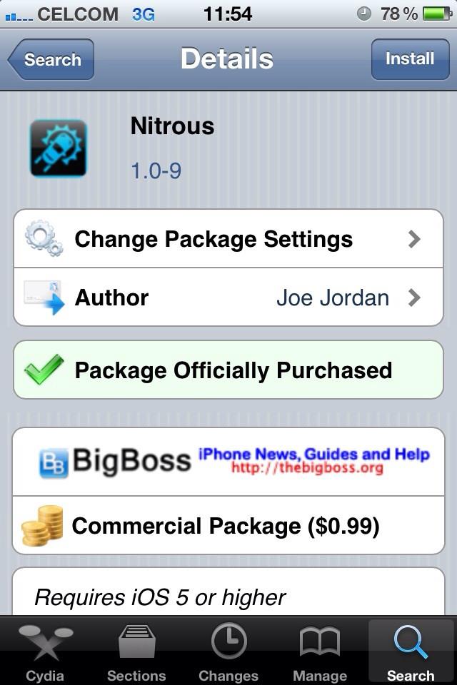เครื่องต้องเจลเบรคแล้ว จากนั้นซื้อได้ที่ Cydia Store ราคาอยู่ที่ 0.99$ USD