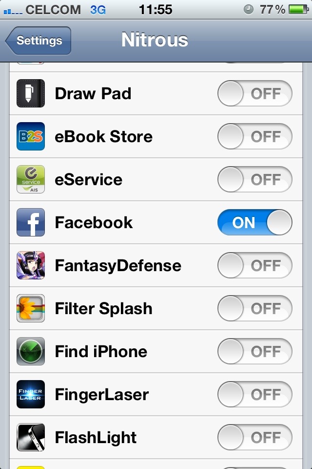 หลังติดตั้งเสร็จให้เข้าไปที่ Settings> Nitrous จากนั้นเลือก ON ให้กับแอปฯ ที่ต้องการ