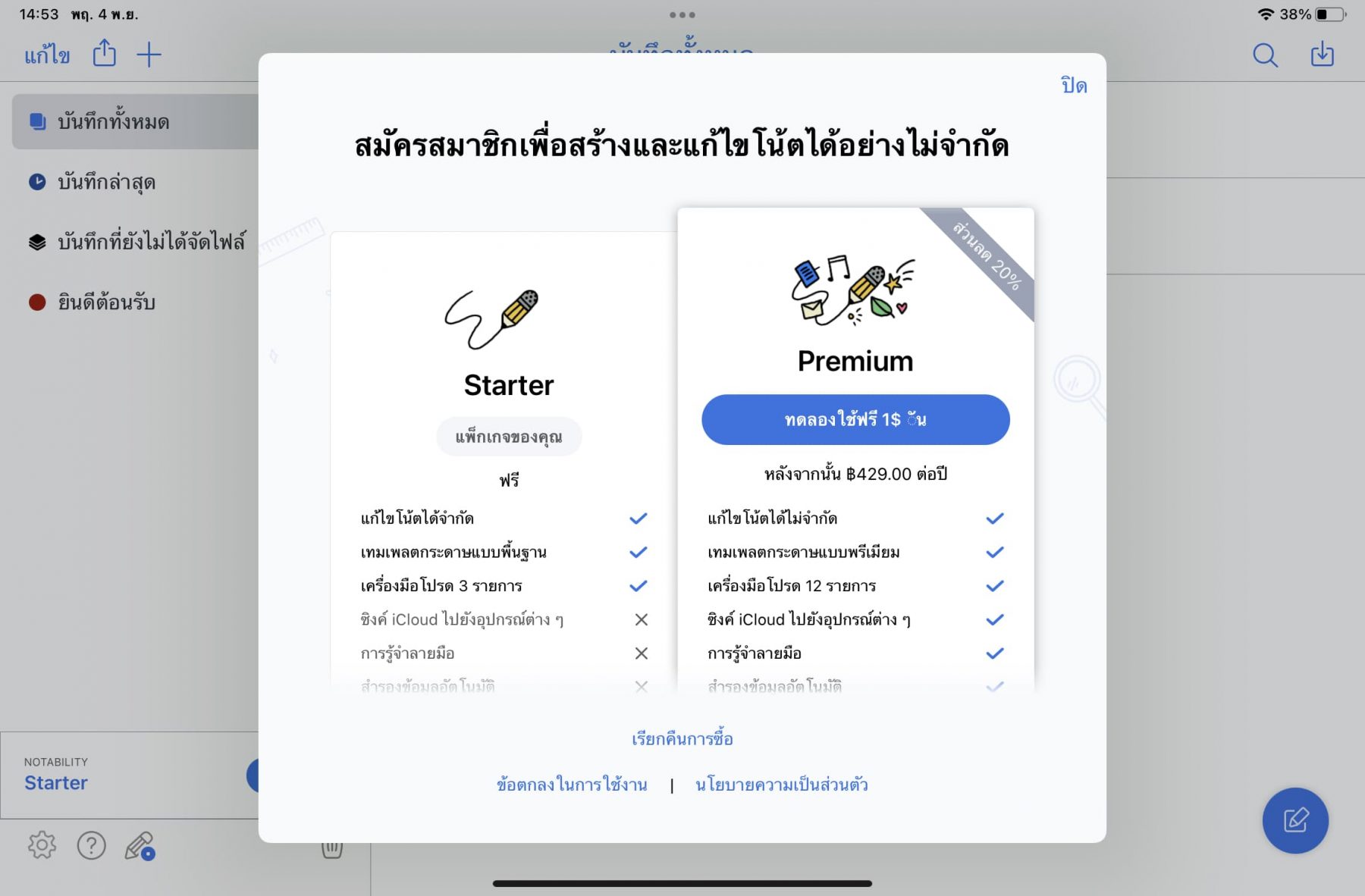 ในการสมัครรับแบบรายปีของ Notability แบบ Premium ในตอนนี้ สำหรับผู้ใช้ที่อยากใช้งานแบบเต็มรูปแบบ ที่อยู่ในแอปเวอร์ชัน 11.0 ในตอนนี้ ต้องสมัครสมาชิกรายปีในราคา 429 บาท/ปี โดยจะสามารถเข้าถึงคุณสมบัติต่าง ๆ ได้ดังนี้
