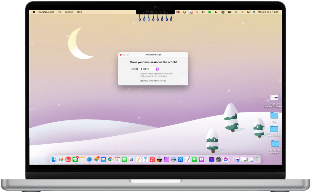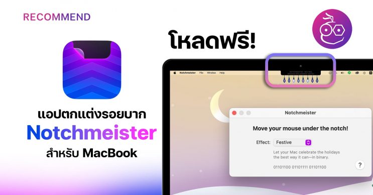 แอปตกแต่งรอยบากสำหรับ MacBook Pro รุ่นที่มีรอยบาก ชื่อแอป “Notchmeister” อนิเมชันน่ารัก ๆ รอบ ๆ รอยบาก โหลดฟรี! เล่นง่าย (MacBook รุ่นอื่น ๆ ก็ใช้ได้)