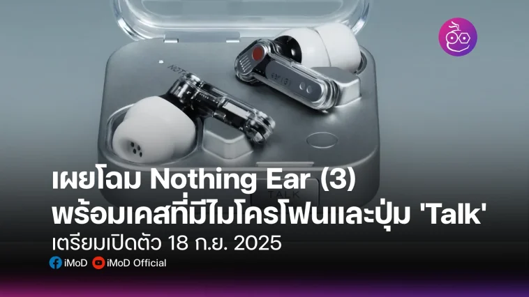 Nothing เปิดเผยดีไซน์เต็มรูปแบบของหูฟัง Ear (3) ซึ่งจะเปิดตัวในวันที่ 18 ก.ย. วีดีโอแสดงรายละเอียดดีไซน์ที่ยังคงโปร่งใสและดีไซน์เคสชาร์จใหม่พร้อมปุ่ม ‘Talk’ และไมโครโฟน Super Mic
