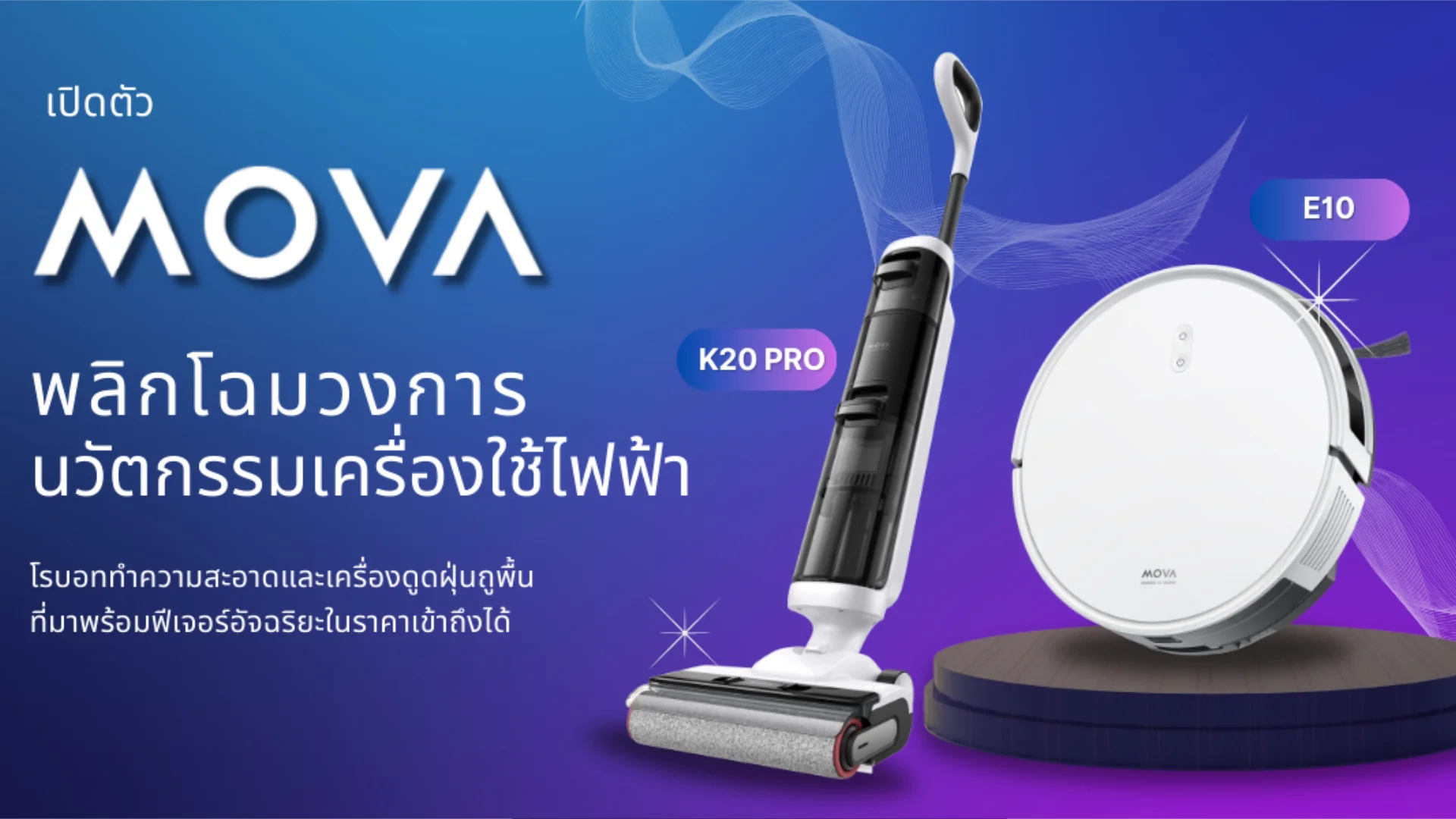 แบรนด์ Mova (โมว่า) เปิดตัวผลิตภัณฑ์ใหม่พร้อมวางขายในไทย ด้วยเครื่องดูดฝุ่นถูพื้นอัจฉริยะ และ โรบอททำความสะอาด
