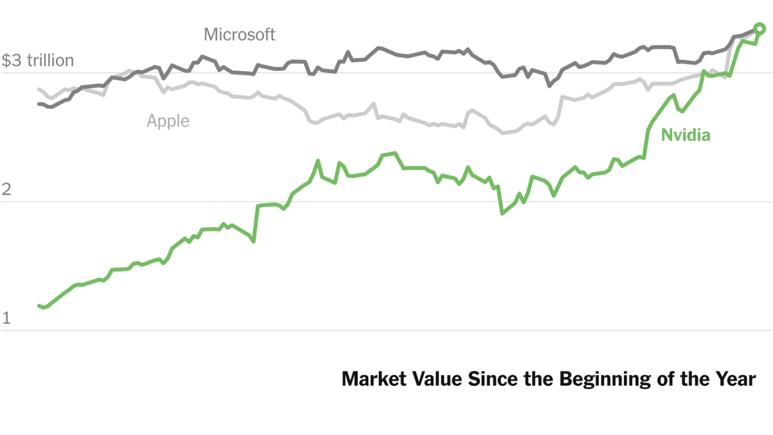 บริษัท Nvidia แซงหน้าบริษัท Apple ขึ้นมากลายเป็นบริษัทที่มีมูลค่าทางการตลาดมากที่สุดในโลกอีกครั้ง เมื่อวันอังคาร์ที่ผ่านมา