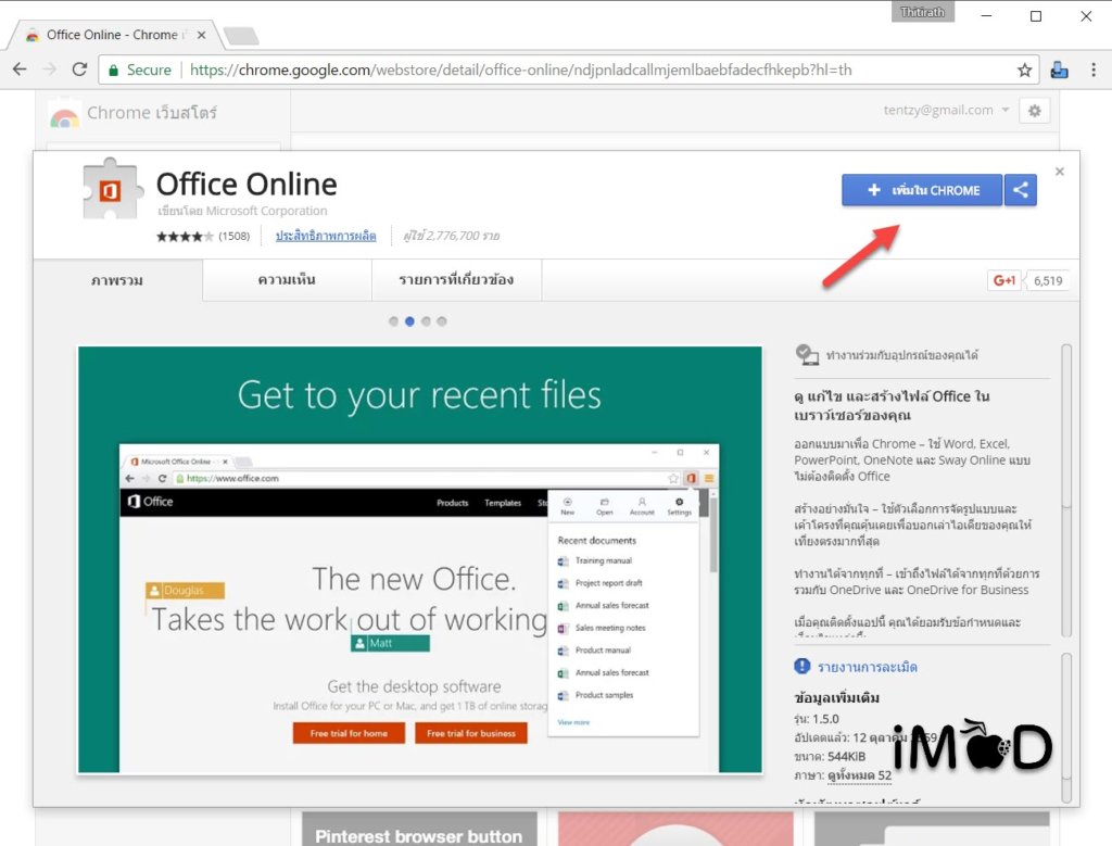 สำหรับการติดตั้งส่วนขยาย (Extensions) Office Online สำหรับ Google Chrome สามารถทำได้ง่ายๆ โดยเปิด Google Chrome (Mac / PC) > ติดตั้ง Office Online ที่นี่ ผ่าน Chrome Web Store > คลิก Add to Chrome (เพิ่มใน Chrome) > Add Extensions