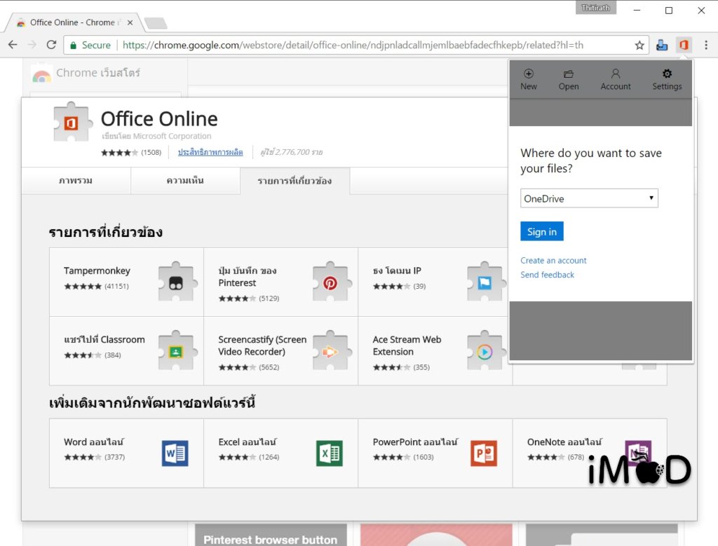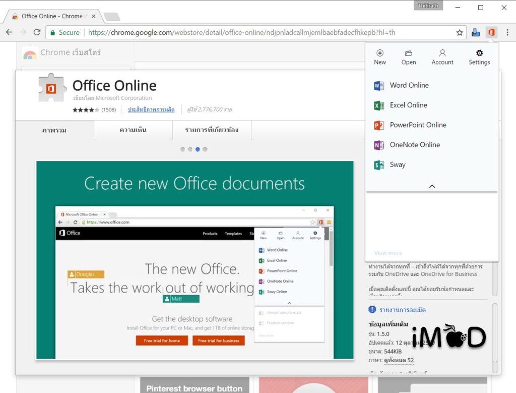 ล่าสุด Microsoft ได้ปล่อยส่วนขยาย (Extensions) Office Online สำหรับ Google Chrome ให้ติดตั้งเพื่อใช้งาน Word, PowerPoint, Excel, OneNote, Sway แบบออนไลน์ได้แล้ว
