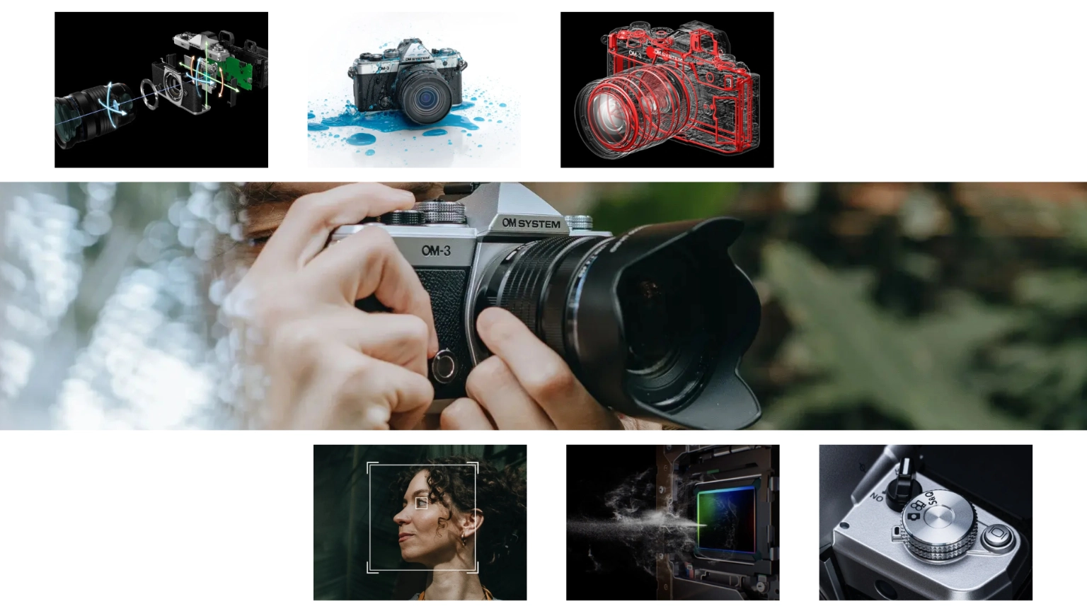 OM-3 มีคุณสมบัติคล้ายกับ OM System OM-1 Mark II ของปีที่แล้วในตัวเครื่องที่กะทัดรัดและราคาไม่แพงกว่า ซึ่งรวมถึงเซ็นเซอร์รับภาพแบบ Stacked Back-illuminated ขนาด 20.37 ล้านพิกเซล และความสามารถในการถ่ายวิดีโอ 4K 60p 10 บิต พร้อมปุ่มหมุนและปุ่มเฉพาะสำหรับโหมดสีและคุณสมบัติการถ่ายภาพด้วยคอมพิวเตอร์