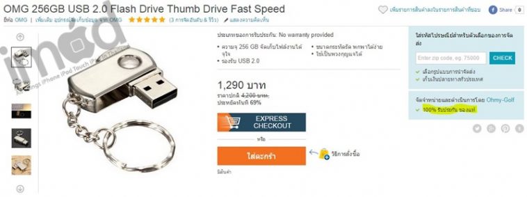ว่าจะสั่งมารีวิวแต่ดันสะดุดตรงบรรทัดสุดท้าย No warranty provided เป็นอันว่าไม่กล้ากดซื้อเลยทีเดียว (ไม่มีประกันใครจะกล้าสั่ง) แอบเสียดายนิดหน่อย แต่ถ้าใครกล้าใจถึงก็ขอฝากเจตนารมณ์ต่อด้วยแล้วกันครับ … แล้วช่วยมาบอกผมทีว่า “มันเก็บข้อมูลได้ถึง 256GB จริงหรือเปล่า?”
