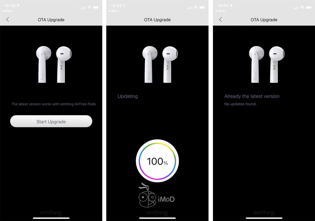 ผู้ใช้สามารถอัปเดตเฟิร์มแวร์ให้เป็นเวอร์ชัน 1.0 ได้ที่แอป Omthing โดยต้องเชื่อมต่อหูฟังกับสมาร์ตโฟนและแอปให้เรียบร้อยก่อนนะคะ