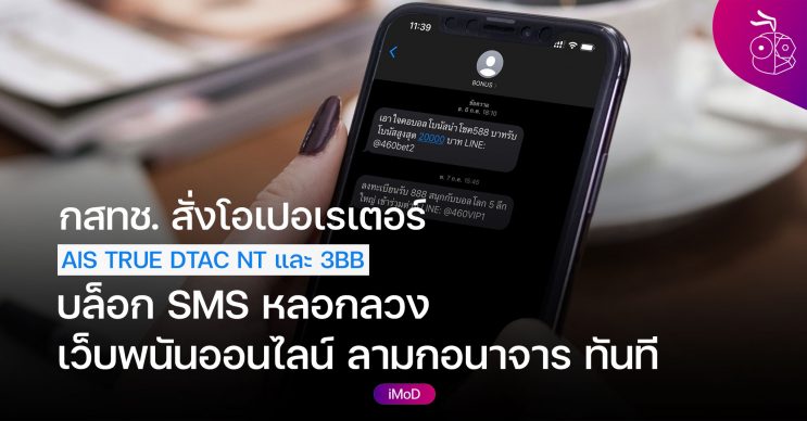กสทช. มีคำสั่งให้โอเปอเรเตอร์ทุกราย ได้แก่ AIS, TRUE, DTAC, NT และ 3BB บล็อก SMS ที่มีเนื้อหาหลอกลวง เว็บพนันออนไลน์ หรือลามกอนาจาร ทันที!