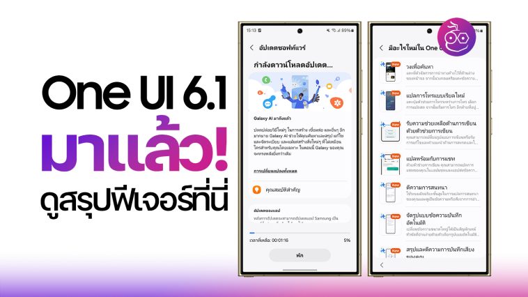 Samsung ปล่อยอัปเดต One UI 6.1 มาพร้อมฟีเจอร์ Galaxy AI ที่เปิดตัวมาพร้อมกับ Galaxy S24 Series ซึ่งในตอนนี้อุปกรณ์รุ่นเก่าที่เปิดตัวในปี 2023 ก็สามารถใช้งานฟีเจอร์ Galaxy AI ได้แล้ว ไปชมไฮไลท์ฟีเจอร์ที่น่าสนใจกันเลย