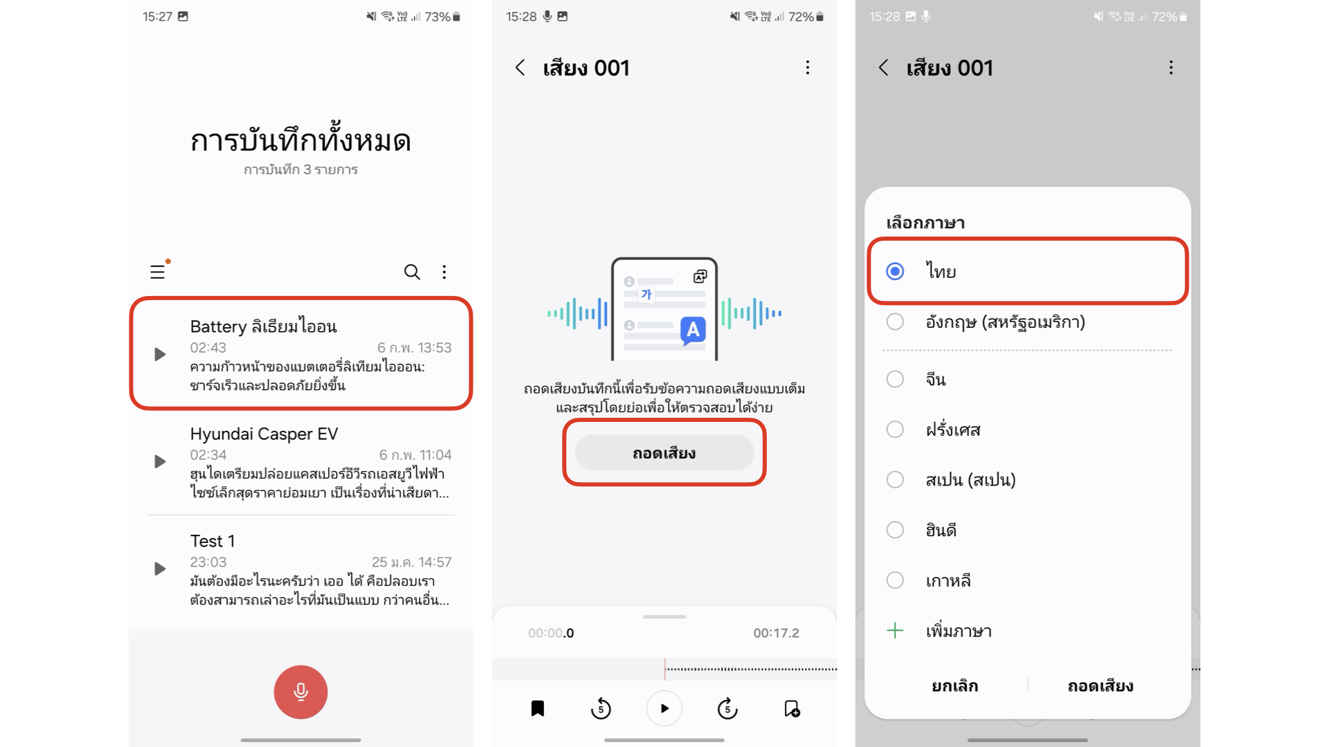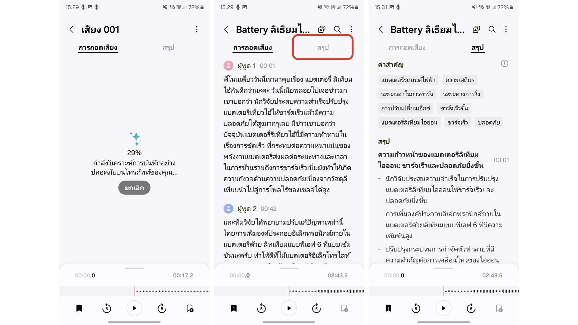 ใช้ AI ตรวจจับเสียงที่กดบันทึกไว้ผ่าน Voice Record แล้ว convert มาเป็น Text โดยสามารถตรวจจับเสียงผู้พูดได้มากถึง 10 เสียง ต้องเข้าประชุมเพื่อจดสรุป นักศึกษาที่ต้องฟังเลคเชอร์แบบยาวๆ ใช้ฟีเจอร์นี้ช่วยได้ เหมาะกับการใช้อัดเสียงที่มีการพูดยาวๆ