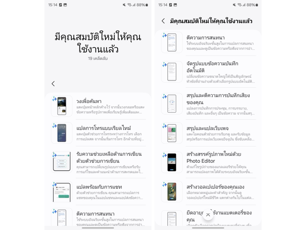 คล้ายล่ามแปลภาษา เมื่อแตะพูด AI ก็จะแปลภาษาให้ทันที วิธีการใช้งานคือ ปัดศูนย์การแจ้งเตือนลงมา > เลือก “ตัวช่วยแปล” > เลือกภาษาทั้ง 2 ผู้พูด > จากนั้นก็ใช้งานฟีเจอร์นี้ได้เลย