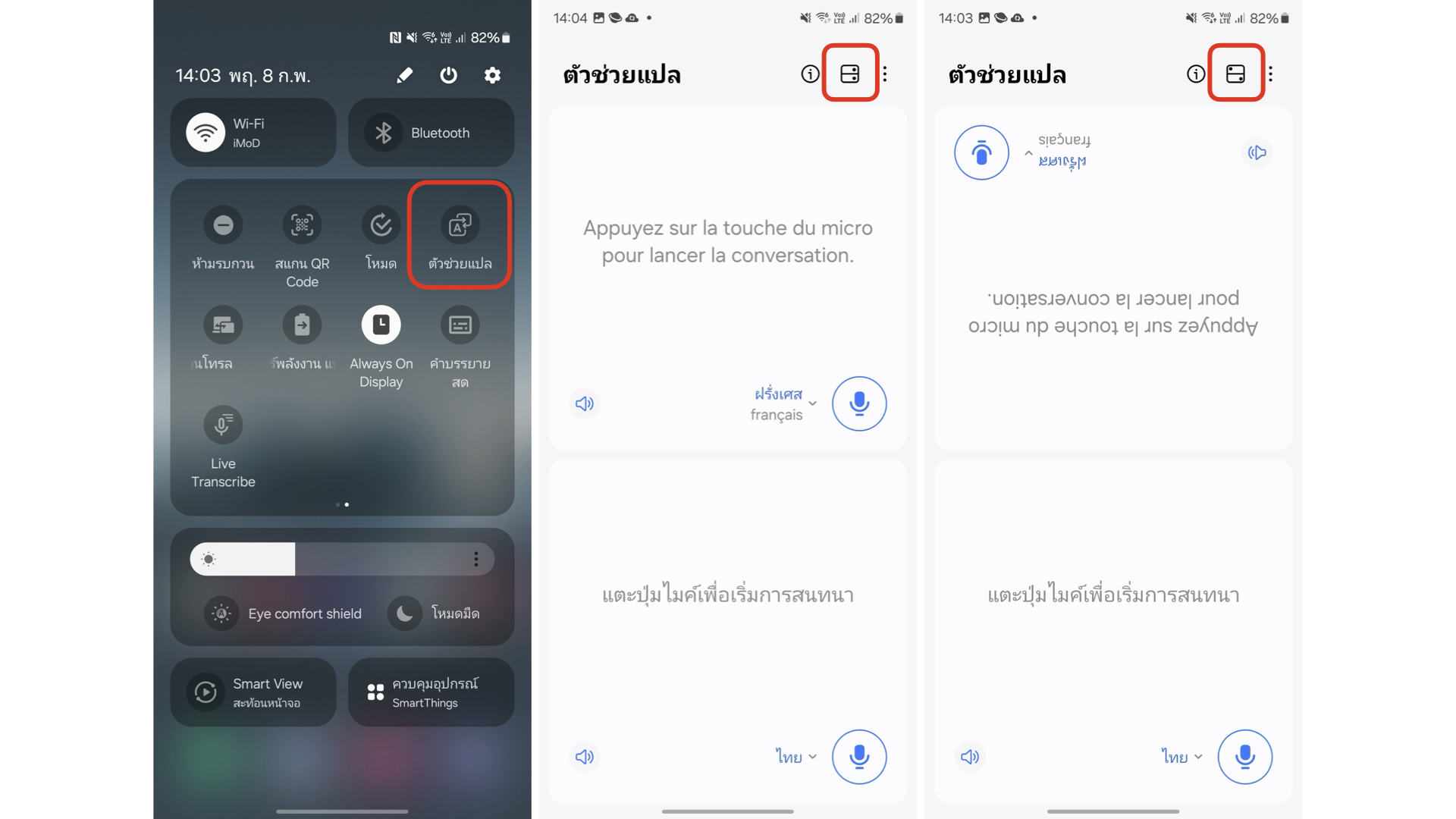 แนะนำเพิ่มเติม : แตะจุดสามจุด > การตั้งค่า > เลื่อนเปิด “แตะเพื่อพูด” เพื่อให้ AI ตรวจจับแค่เสียงที่เราต้องการให้แปลฃ