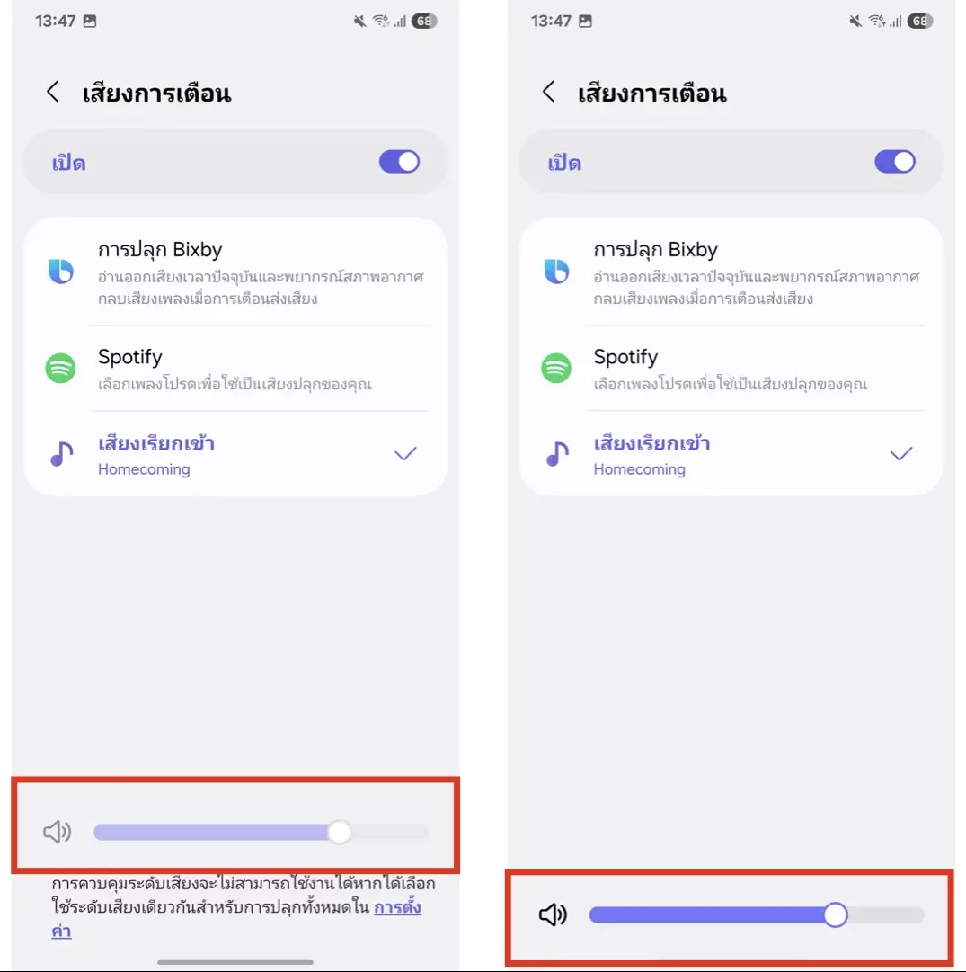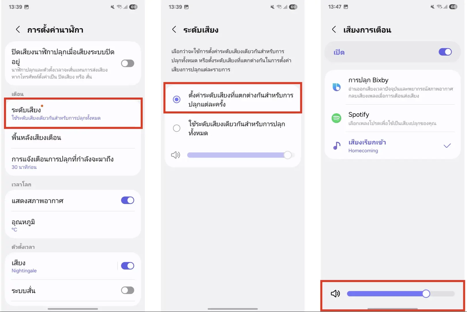 เพียงเท่านี้ก็สามารถเลือกปรับระดับเสียงปลุกแต่ละรายการได้แล้ว
