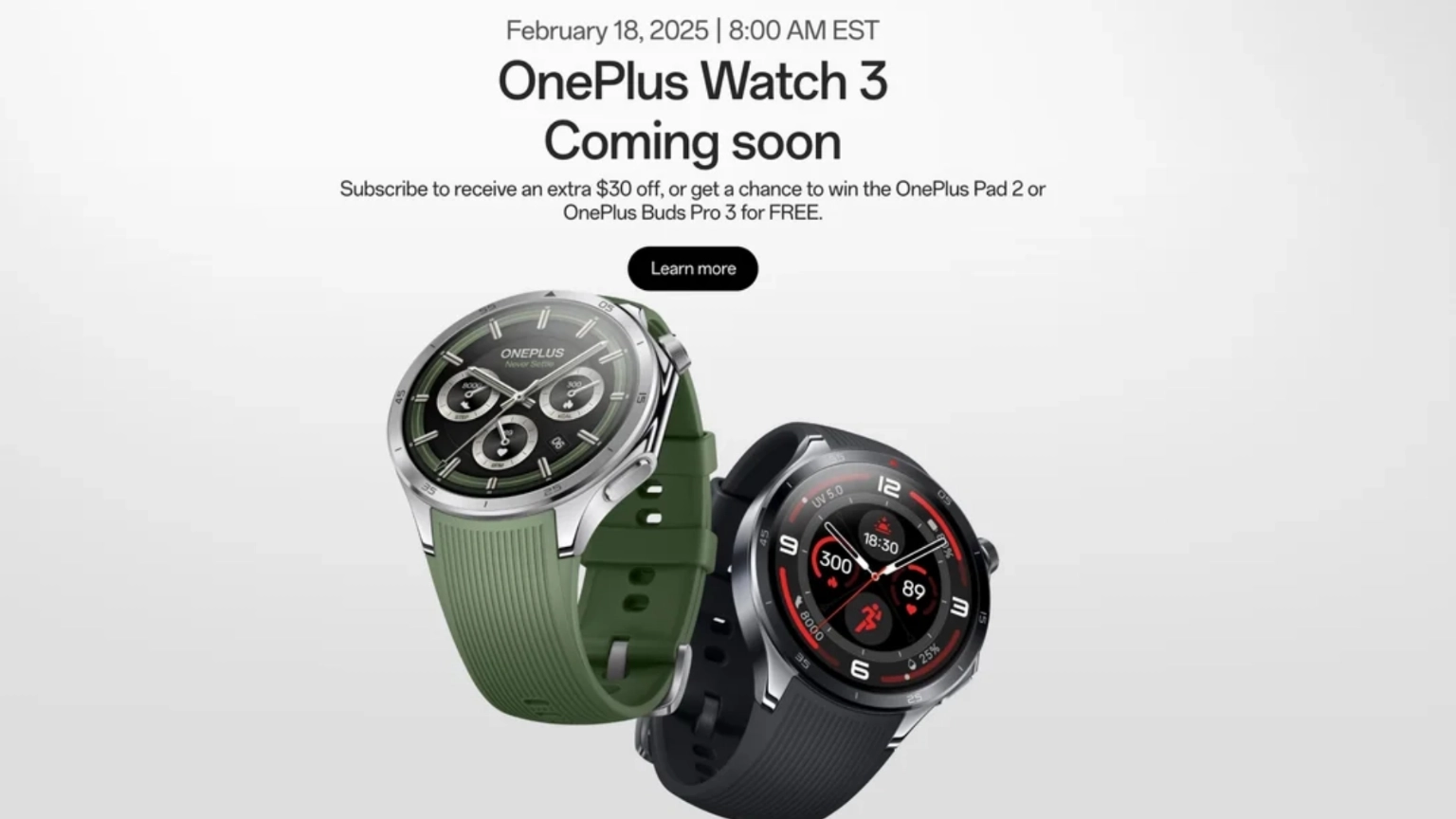 OnePlus เตรียมเปิดตัว OnePlus Watch 3 เปิดตัวอย่างเป็นทางการ 18 กุมภาพันธ์ 2025 พร้อมการออกแบบที่อัปเดต อายุการใช้งานแบตเตอรี่ที่ดียิ่งขึ้น และการรองรับ Wear OS อย่างต่อเนื่อง