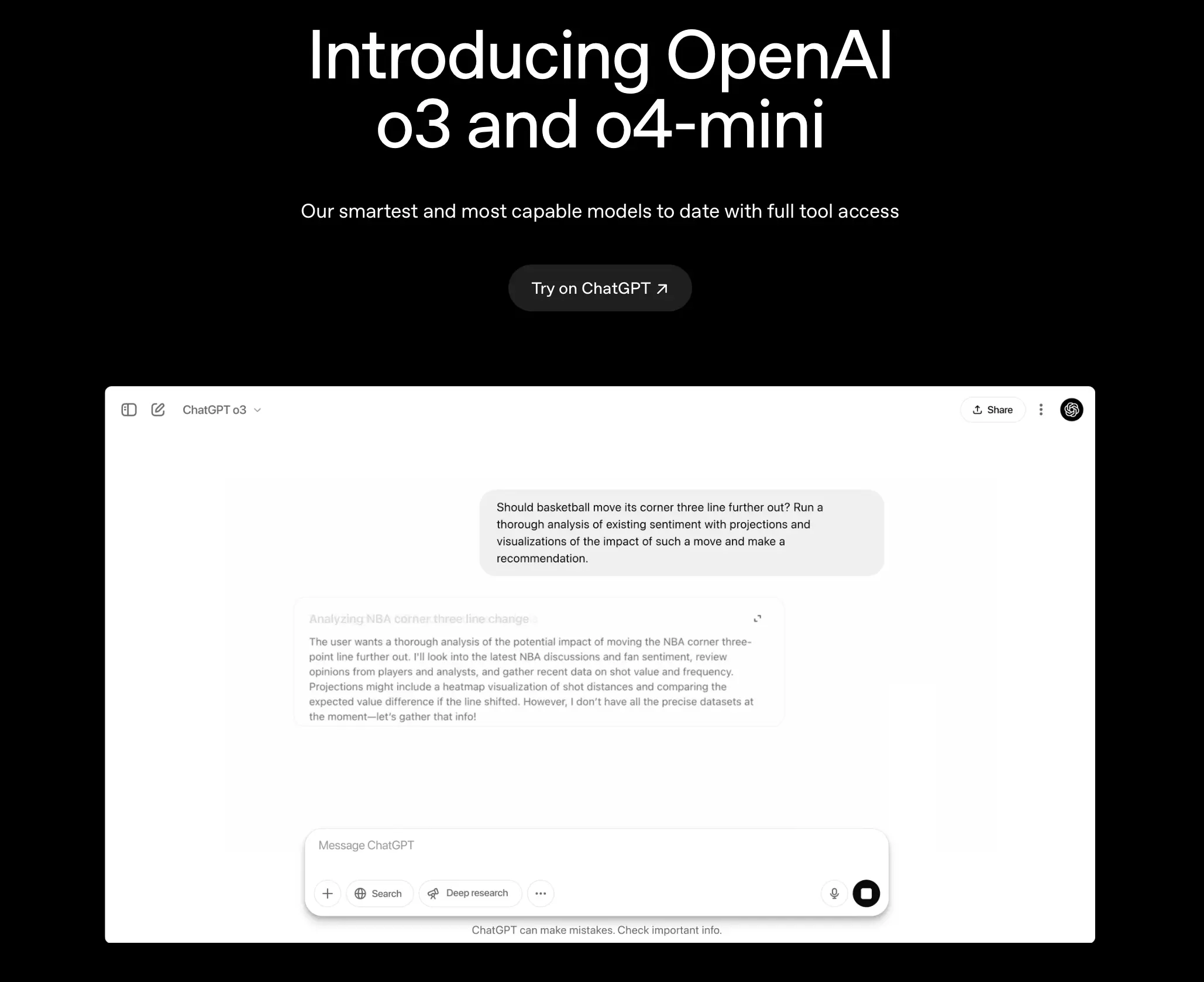 o3 และ o4-mini เปิดให้ใช้งานแล้วสำหรับผู้ใช้ ChatGPT Plus, Pro และ Team โดย o3 และ o4-mini มาแทนที่ o1, o3-mini และ o3-mini-high
