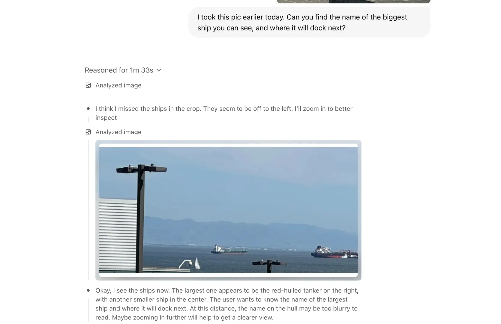 OpenAI เผยว่าผู้ใช้สามารถใช้ o3 และ o4-mini ในการค้นหาข้อมูลผ่านเว็บ, วิเคราะห์ไฟล์และข้อมูลด้วย Python, ตีความ, สร้างรูปภาพ โดย OpenAI เผยว่าโมเดล AI เหล่านี้สามารถตัดสินใจได้ว่ากรณีไหนที่ควรใช้เครื่องมือแต่ละชนิดเพื่อให้ได้คำตอบได้ละเอียดและครบถ้วนมากขึ้น โดยเฉพาะคำถามที่มีความซับซ้อน และโมเดล AI ใหม่นี้สามารถ “คิด วิเคราะห์ รูปภาพได้”