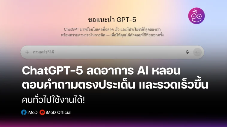 เปิดใช้งานแล้ว! ChatGPT-5 โมเดลใหม่ตอบคำถามตรงประเด็น และรวดเร็วขึ้น ใช้งานได้กับทุกแพ็กเกจ