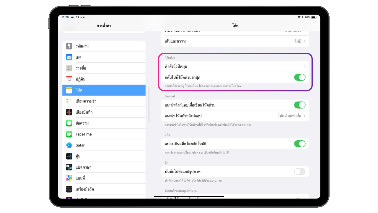 ตั้งค่าเปิด/ปิด Quick Note บน iPad