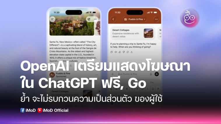 - โฆษณาจะแยกออกจากคำตอบของ ChatGPT และไม่ส่งผลกับคำตอบที่สร้างขึ้น
