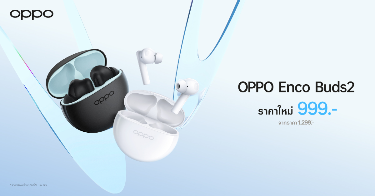 OPPO Enco Buds2 หูฟังไร้สายตัวเล็ก เบสทรงพลัง ให้คุณเพลิดเพลินไปกับทุกจังหวะในชีวิตได้ง่ายขึ้น ในราคาใหม่เพียง 999 บาท