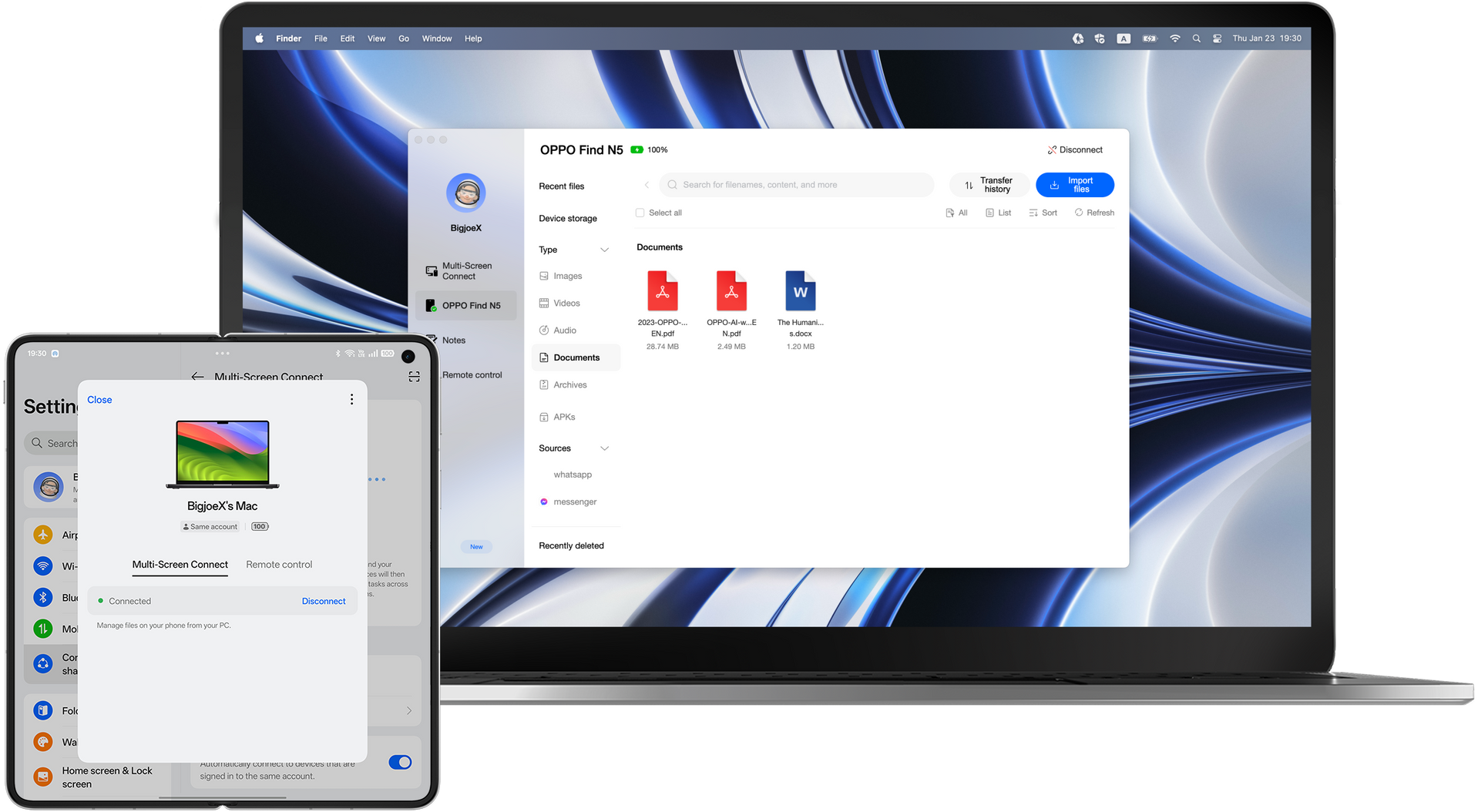 - แชร์ไฟล์ไปยัง iPhone หรือ Android ได้ง่าย ๆ ด้วยฟีเจอร์ Touch to Share เพียงmedkiดาวน์โหลดแอปพลิเคชัน O+ Connect บน iPhone เพื่อเปิดใช้งานการแชร์ข้ามแพลตฟอร์ม