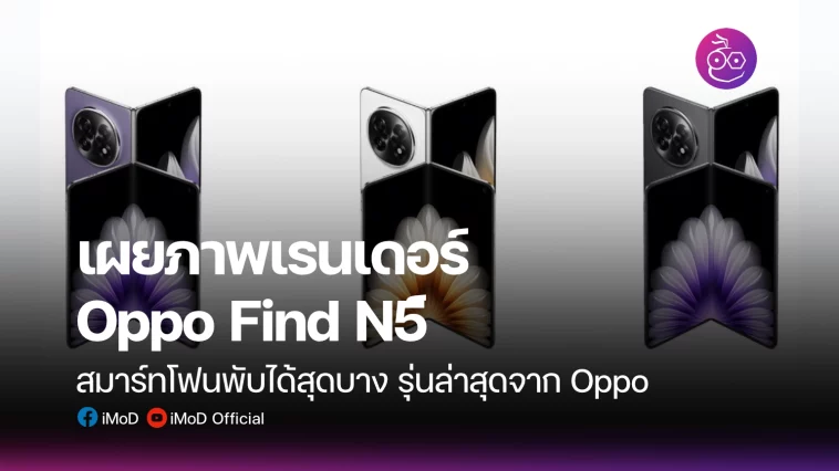 เผยภาพเรนเดอร์ Oppo Find N5 สมาร์ทโฟนพับได้รุ่นล่าสุดจาก Oppo ที่กำลังเป็นกระแสอย่างมาก จุดเด่นที่ความบางเฉียบ ดีไซน์ที่สวยงาม
