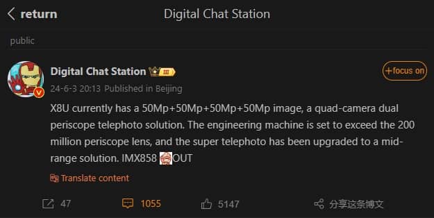 นอกจากนี้ ข่าวลือยังเผยอีกว่า Find X8 Ultra อาจจะไม่ได้ใช้เซ็นเซอร์ Sony IMX858 เหมือนรุ่นก่อนหน้า ซึ่ง Find X7 Ultra ใช้เซ็นเซอร์นี้กับเลนส์ Periscope ที่รองรับการซูมแบบออฟติคอล 6 เท่า