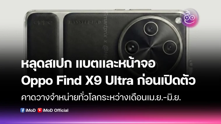 Oppo Find X9 Ultra คาดว่าจะเปิดตัวในจีนช่วงเดือนมี.ค. ล่าสุดมีข้อมูลหลุดเพิ่มเติมเกี่ยวกับสเปกแบตเตอรี่และหน้าจอของรุ่นนี้ออกมา