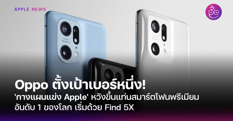 Oppo ขอแข่งด้วย! – South China Morning Post รายงานว่า Oppo วางแผนแข่งกับ Apple ท้าชิงตำแหน่งแบรนด์สมาร์ตโฟนพรีเมียมเบอร์ 1 ของโลก เริ่มด้วยรุ่น Find X5 ที่เพิ่งเปิดตัว