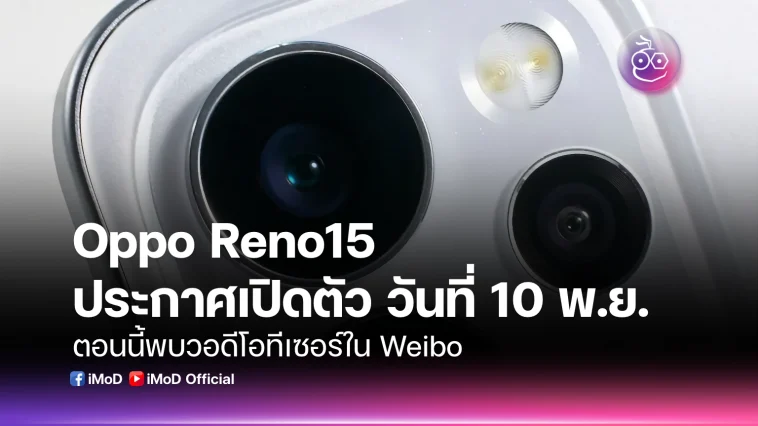 ในโพสต์บน Weibo ผู้ผลิตจากประเทศจีนได้แสดงทีเซอร์เกี่ยวกับการเปิดตัว Reno15 ในรูปแบบวีดีโอ โดยจะเปิดตัวในประเทศจีนวันที่ 10 พ.ย.