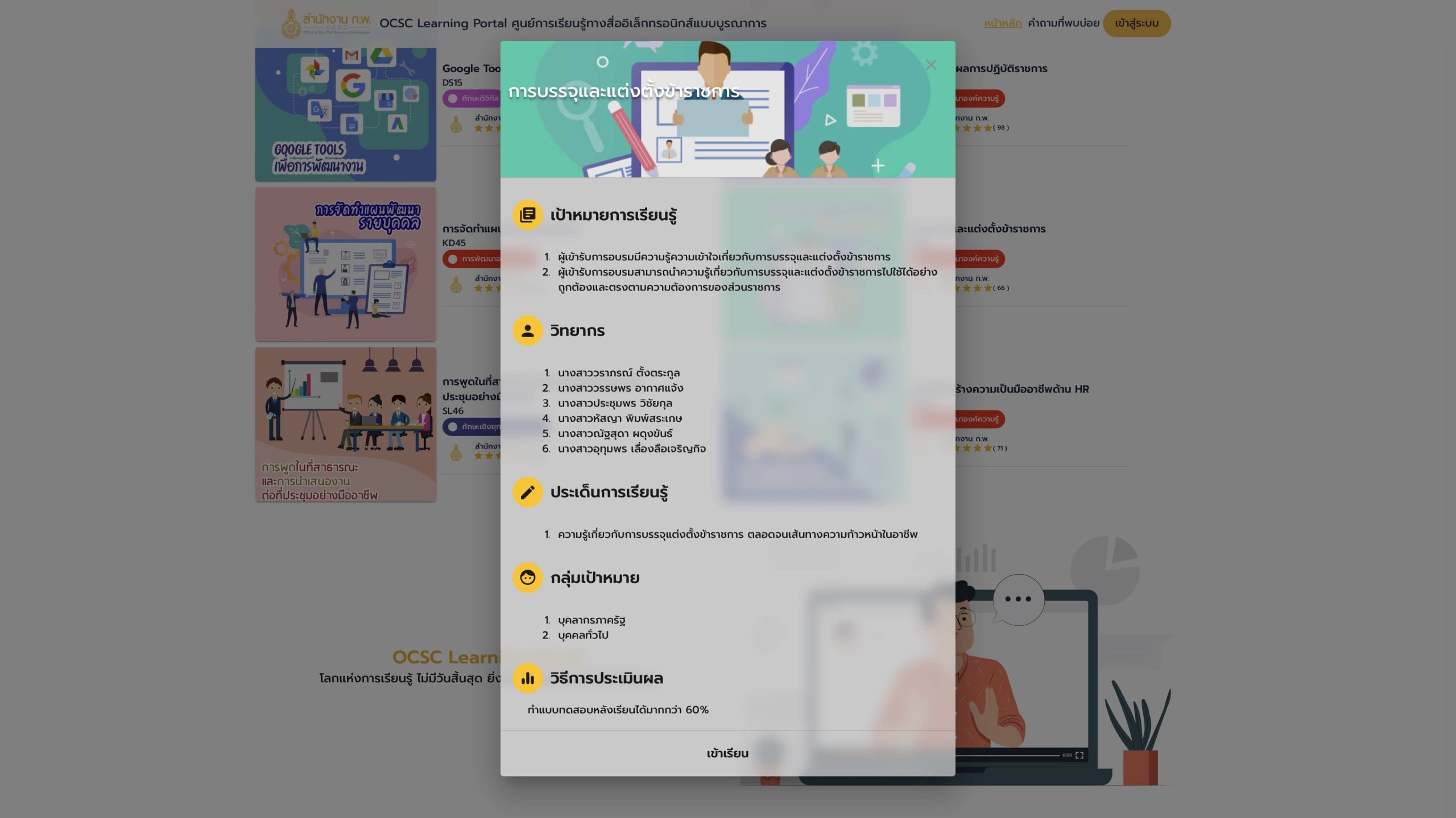 เช่น ทีมงานเลือกคอร์สเรียนการบรรจุและแต่งตั้งข้าราชการ