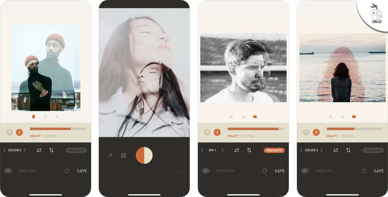 แอปแต่งรูปด้านการทำภาพ Double Exposure หรือจะเรียกว่า “การทำภาพซ้อนภาพ” ก็ได้ครับ ด้วยวิธีการทำง่ายๆ เพียงเลือกรูปภาพ 2 รูปเข้าไป เสร็จแล้วก็กำหนดค่าความโปร่งแสง (Opacity) ก็เรียบร้อย
