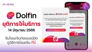 ดอลฟิน วอลเล็ท (Dolfin Wallet) จะยุติการให้บริการทุกบริการ ให้บริการวันสุดท้ายในวันที่ 14 มิถุนายน 2566