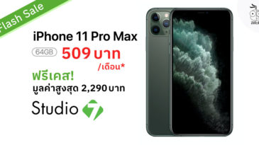 iPhone 11 Pro Max 64GB เริ่มที่ 509 บาท/เดือน* ฟรีเคส มูลค่าสูงสุด 2,290 บาท ที่ Studio 7 วันนี้ – 31 ส.ค. 63