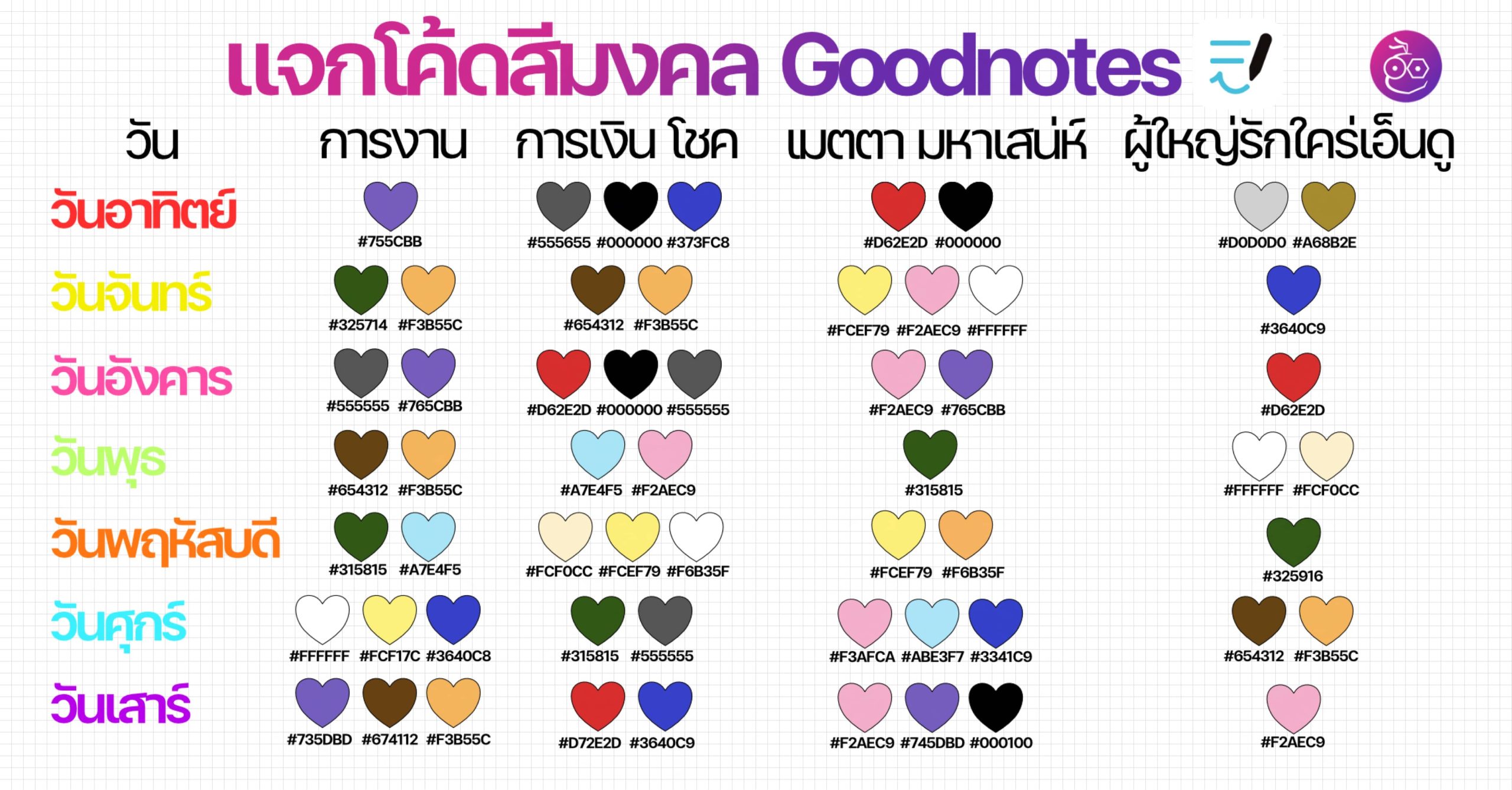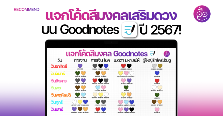 โค้ดสีมงคล Goodnotes ปี 2567